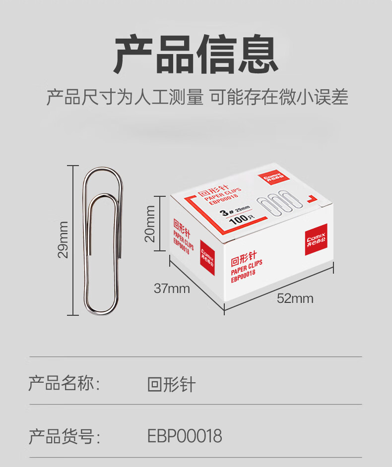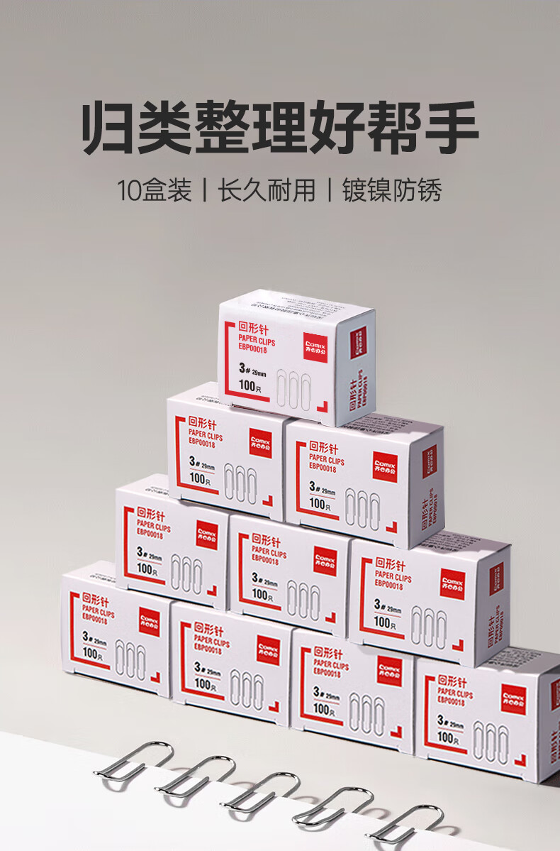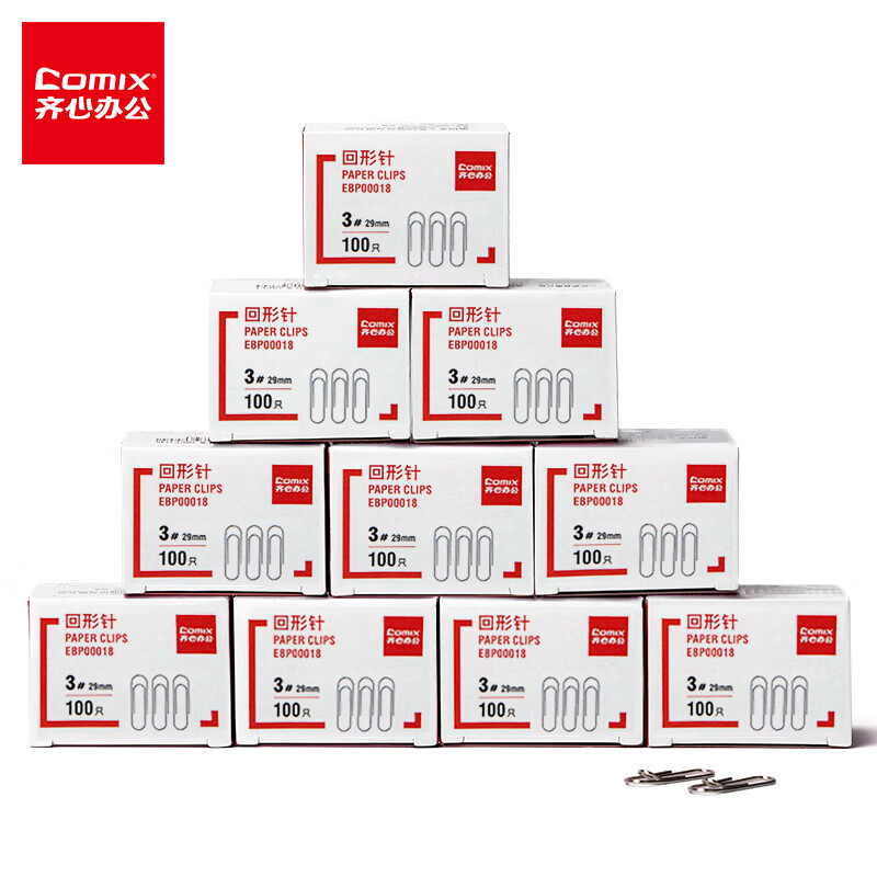 齐心(COMIX)【超级爆款】1000枚29mm金属回形针 3#曲别针镀镍防锈 100枚/盒 10盒装 办公室具用品 EBP00018镍