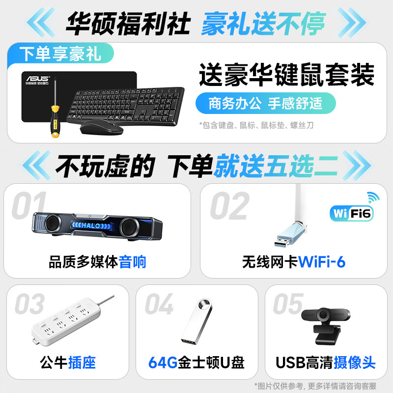 华硕(ASUS)【14代酷睿i7】台式电脑主机台式机独显商用办公家用游戏电脑全套 B:酷睿i5丨16G丨1TB丨旗舰独显 单主机【五年质保/带wifi】