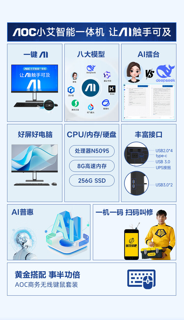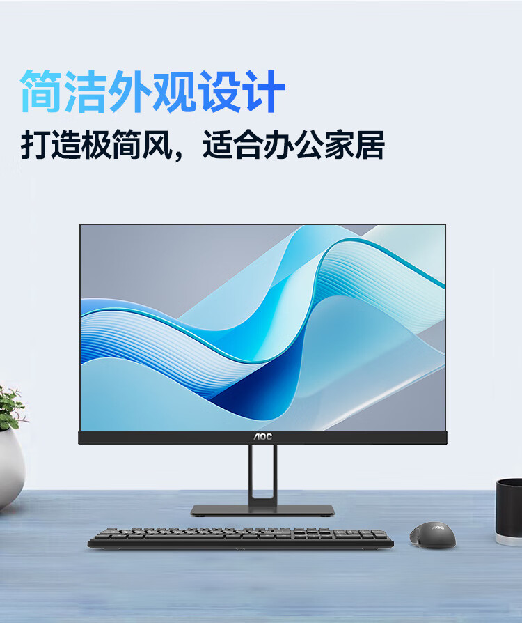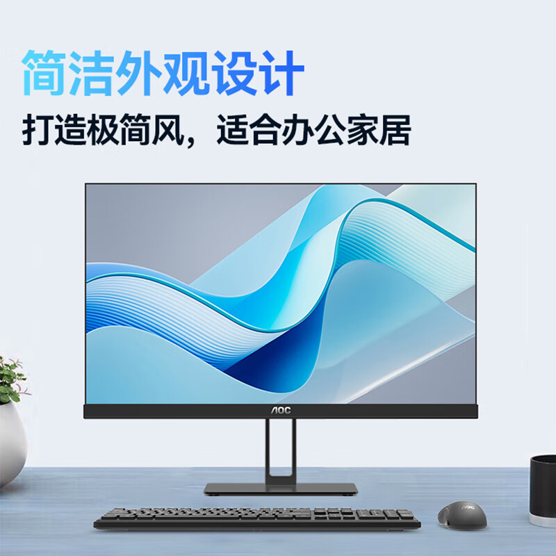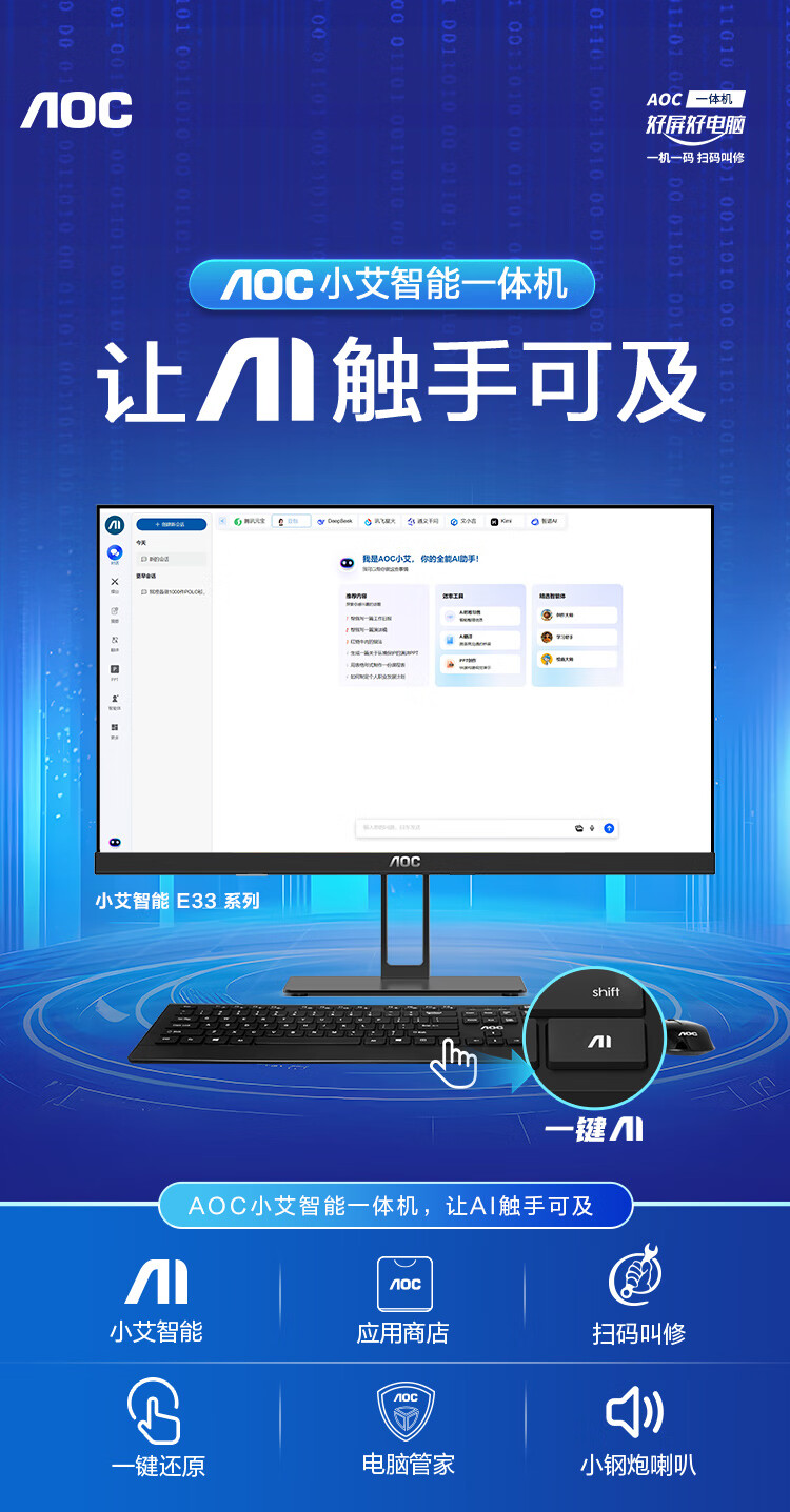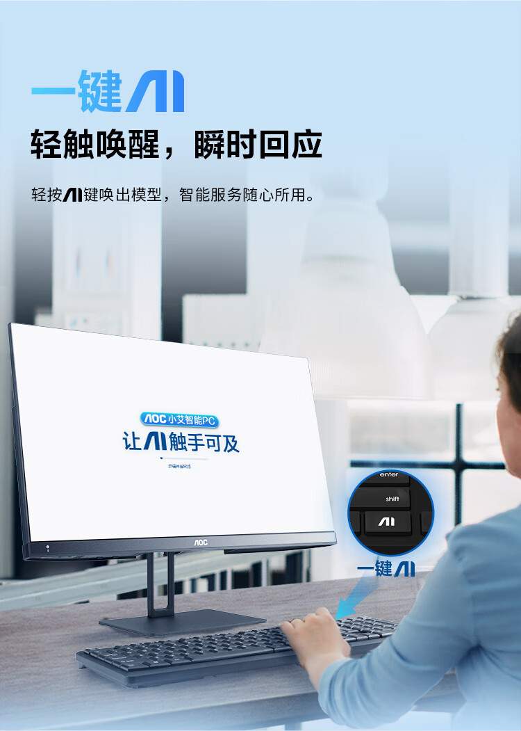 AOC大师E33 23.8英寸小艾智能办公一体机电脑台式AIPC主机(N5095 8G 256G WIFI 键鼠) 黑