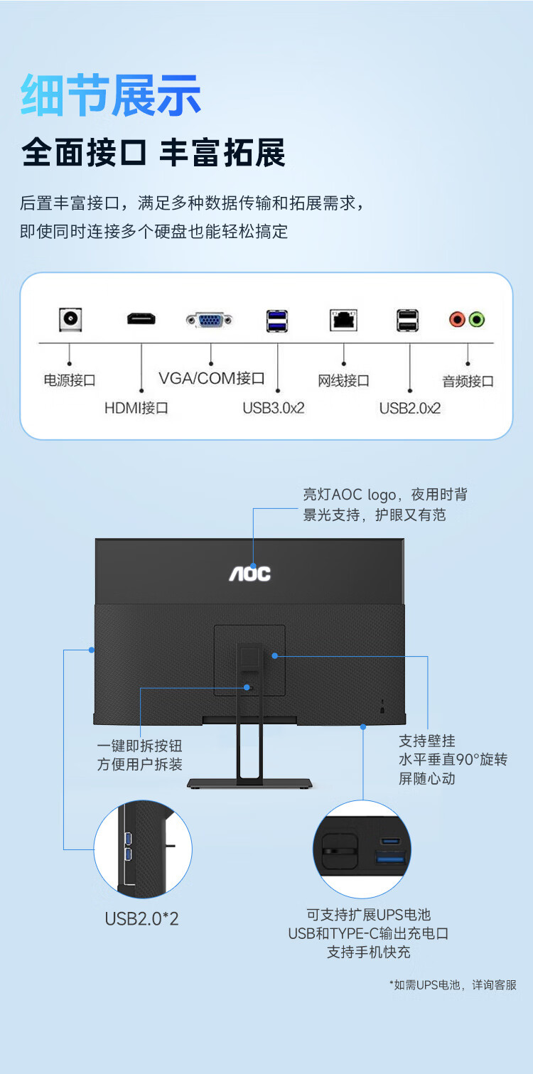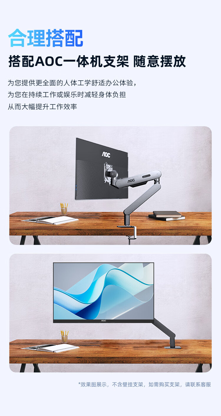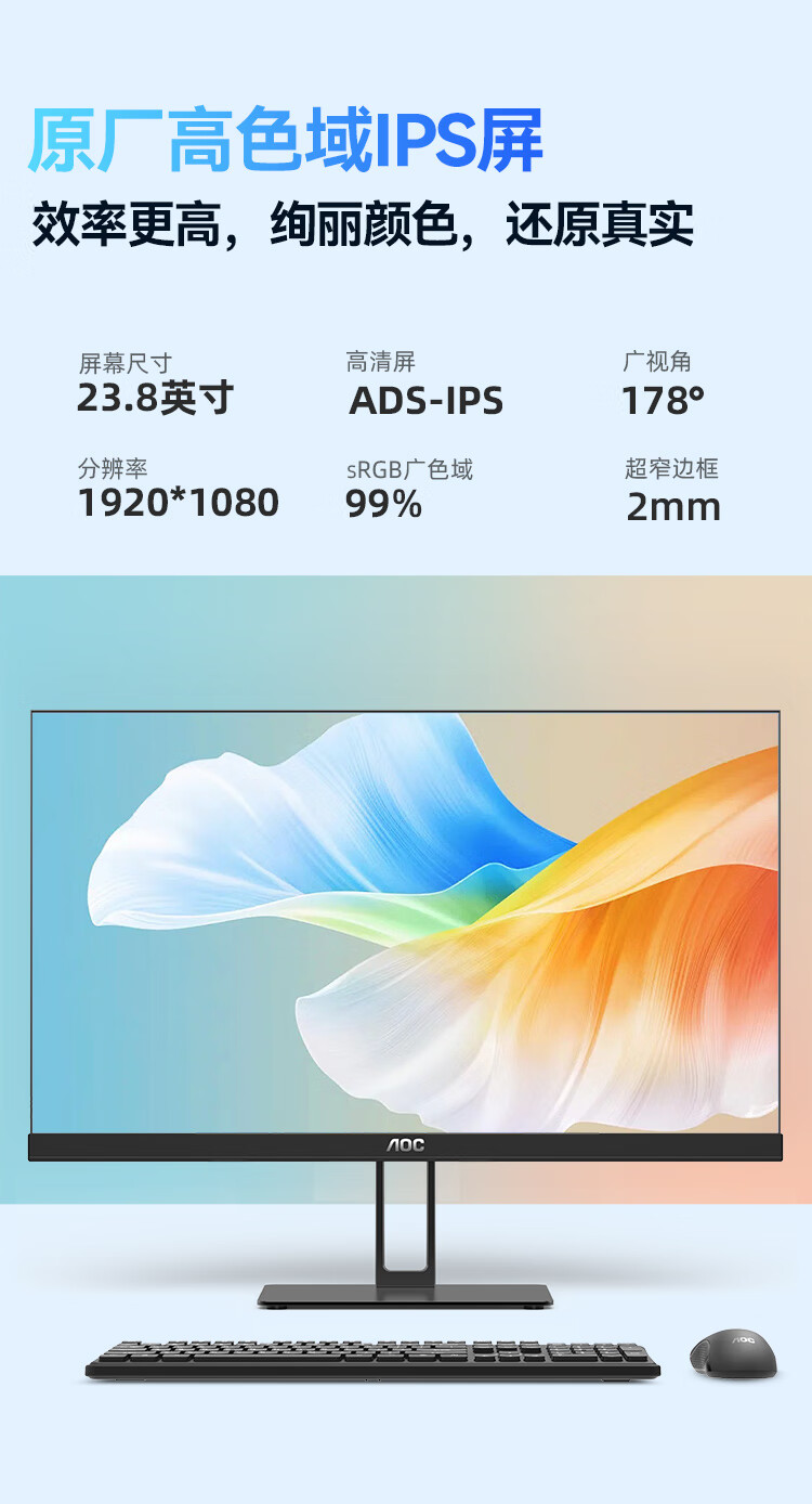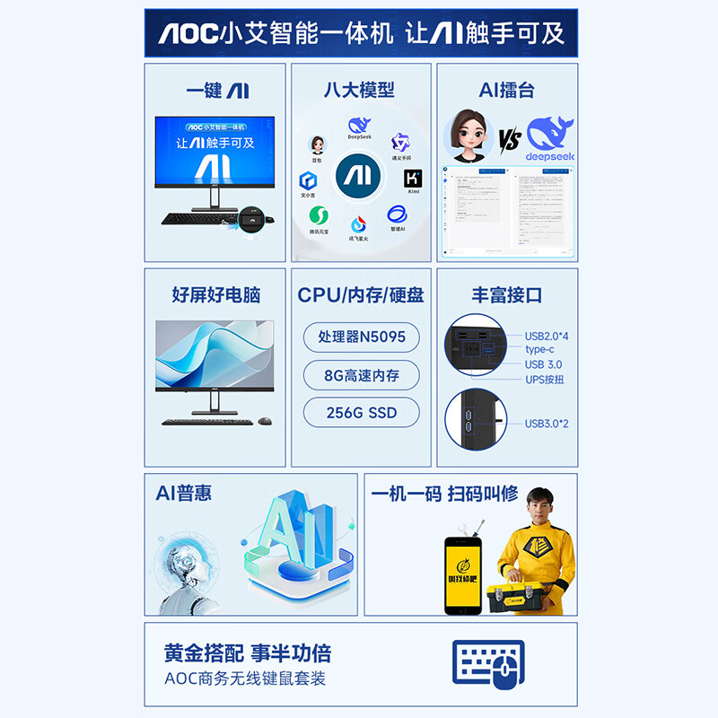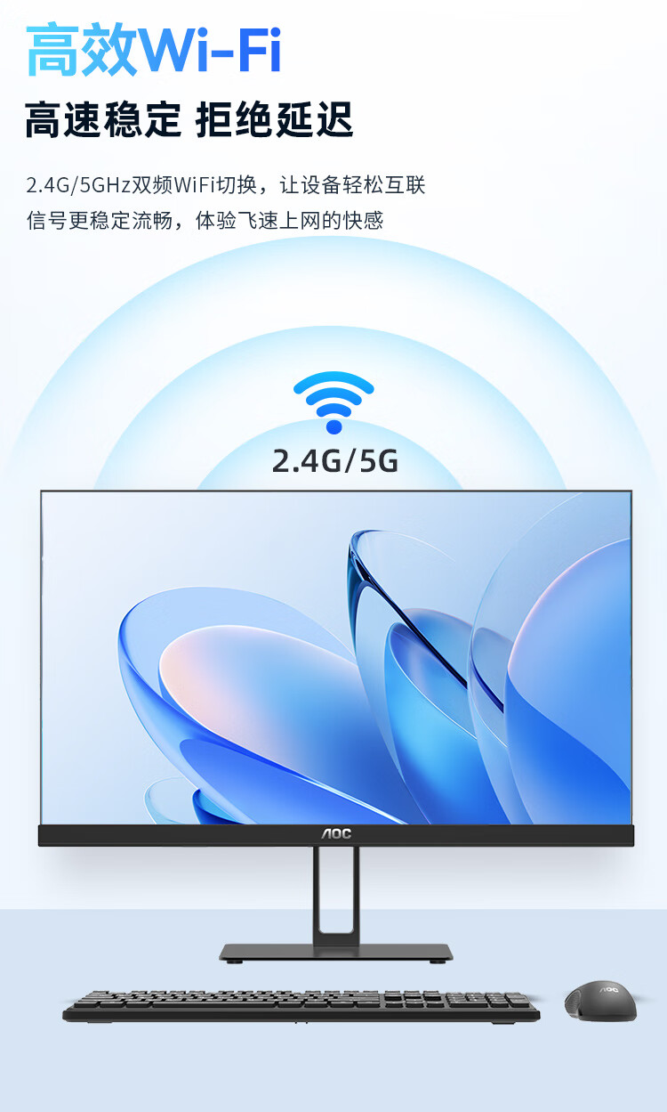 AOC大师E33 23.8英寸小艾智能办公一体机电脑台式AIPC主机(N5095 8G 256G WIFI 键鼠) 黑